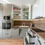 The 100 m^2 New Spacious Apartment With City View includes a patio and is located approximately a 10-minute ride from Cakiho-Dezofiho palac. Wi-Fi and parking are also available at the apartment.